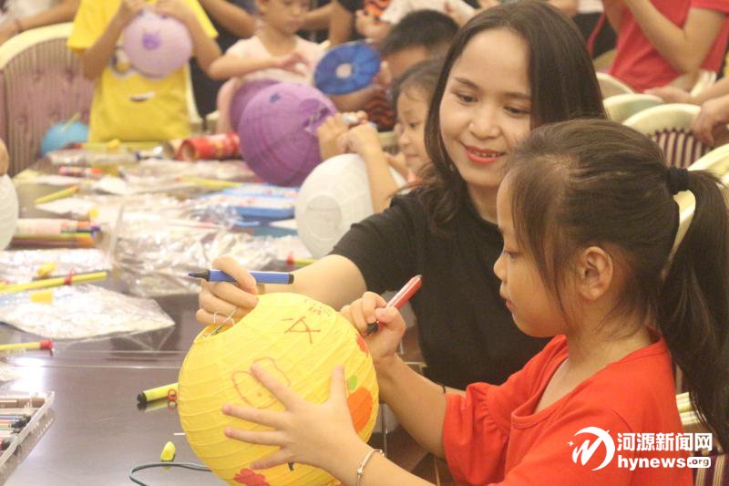 記者在現場看到,家長們帶著孩子一起動手組裝燈籠,用彩筆描繪燈籠,很快,一盞盞五顏六色的燈籠把現場裝點得繽紛絢麗,充滿了濃濃的節日氣氛。這些燈籠有的體現了中秋的傳統文化,有的展現了客家古邑特色,有的則向大家宣傳了社會主義核心價值觀。