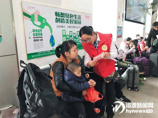 活動現場,黨員志愿者們不 僅為旅客們提供搬運行李、準點 報時、乘車提醒、服務站指引等 一系列志愿活動,更結合自身業 務優勢,通過2017 年該行成功堵 截的電信詐騙案例,深入分析詐 騙手段,極大地提高了旅客的防 詐騙意識,同時,還為旅客普及 貨幣防偽知識。