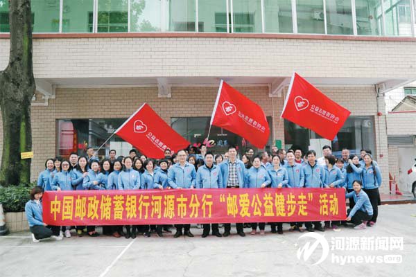 3月20日,中國郵儲銀行河源 市分行開展“郵愛公益一周年”為 主題的系列公益活動,全轄區(qū)除臨 柜人員外,機關(guān)和6個支行統(tǒng)一佩戴 郵愛公益基金的Logo 胸貼,以健步 走的形式發(fā)放宣傳折頁,在單位就 近街道或公共場所對郵愛公益基金 和郵儲銀行公益日進行宣傳。