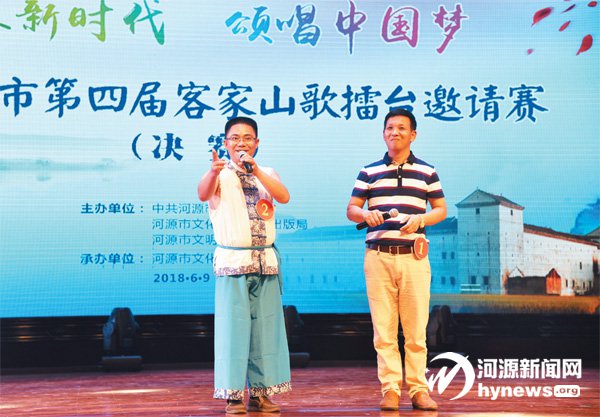 前日,2018年河源市第四屆客家山歌擂臺邀請賽落下帷幕,來自紫金縣的山歌歌手賀景新摘得了本屆擂臺賽的桂冠。