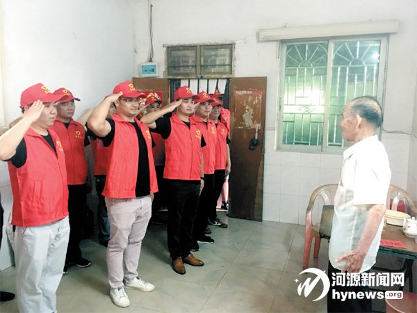 28日,在“八一”建軍節來臨之際,由50名退伍軍人組建的河源市退伍軍人志愿者服務隊聯合源城區民政局復退辦、區團委等部門開展了“退伍軍人關愛抗戰老兵、傷殘老兵”慰問活動,為市區的抗戰老兵、傷殘老兵們送去節日的問候以及慰問品。