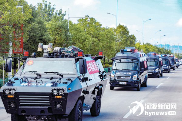 在市及源城區的武裝大巡游活動現場,由32臺各類警車組成的公安武裝巡游方隊從老城中山公園出發,經珠河橋、文化廣場、沿江西路、新河大道、205國道、河源大道、迎客大橋、東環路、勝利大橋、東江首府南門線路巡游。同時,由200名干警、100名機關干部、100名志愿者共400人組成的徒步巡游方隊從源城區中山公園出發,沿珠河橋、沿江路、市會議中心路線巡游。巡游展示了河源警方的昂揚斗志和威武風采,展示掃黑除惡工作隊伍團結一致、眾志成城的良好形象,以及向全市人民表達掃黑除惡專項斗爭必勝的信心和決心。