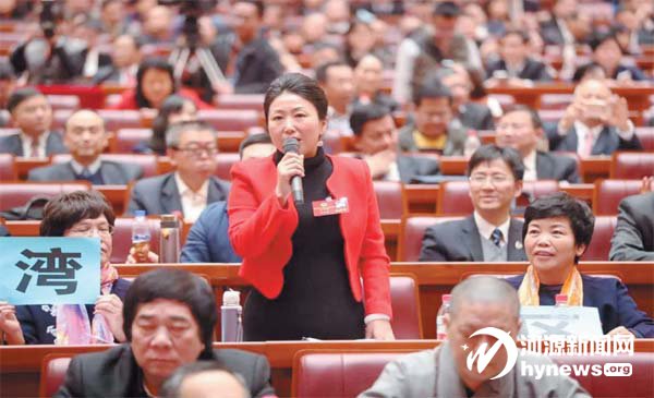 我市省政協委員高舉“大灣區”字牌,多次起立舉手,引起大會主持人的注意,最終委員倪麗君“搶麥”成功。