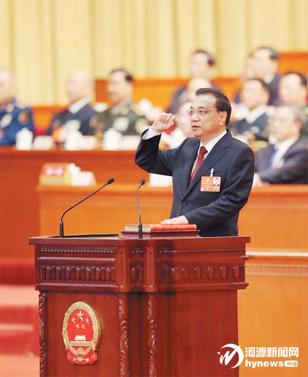 李克強(qiáng)進(jìn)行憲法宣誓。