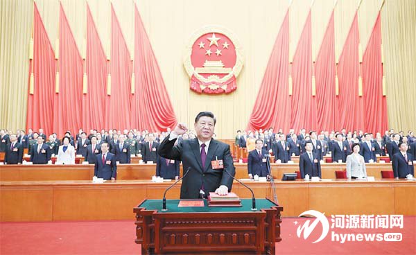 隨后,新當選的全國人大常委 會委員長栗戰書、新當選的國家副 主席王岐山分別進行憲法宣誓,新 當選的全國人大常委會副委員長、 秘書長進行了集體宣誓。