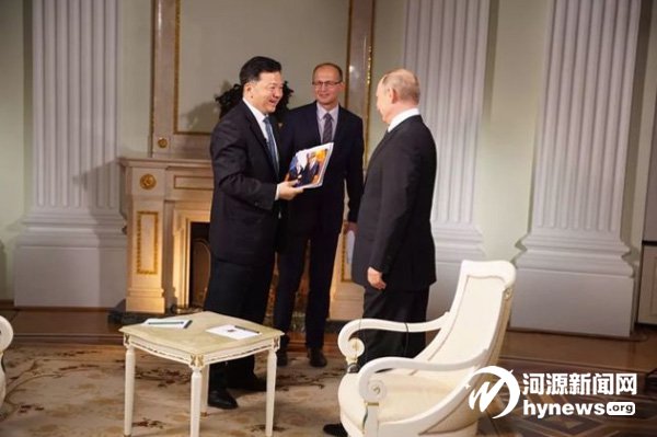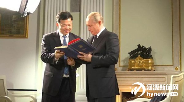 在采訪前,慎海雄向普京總統(tǒng)展示了中央廣播電視總臺旗下新媒體平臺推出的網(wǎng)絡互動活動“誰是普京粉”和“我想問普京”的畫冊。畫冊封面印有習近平主席與普京總統(tǒng)的合影。