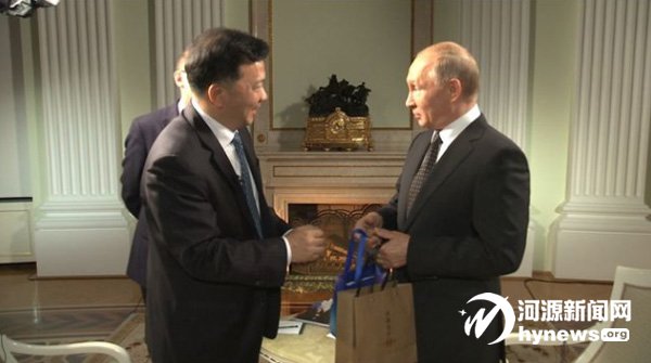結束專訪之際,慎海雄將家鄉(xiāng)杭州的龍井茶贈送給普京總統(tǒng),并祝普京履新成功精彩!祝中國之行順利!祝俄羅斯世界杯圓滿舉辦!
