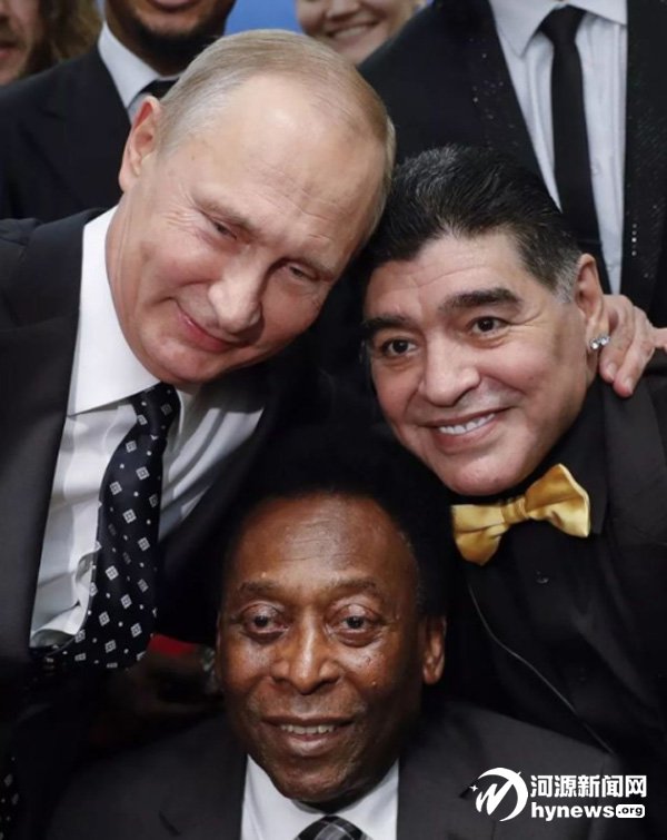 2017年12月1日,普京在2018年世界杯分組抽簽儀式上與兩代球王合影。