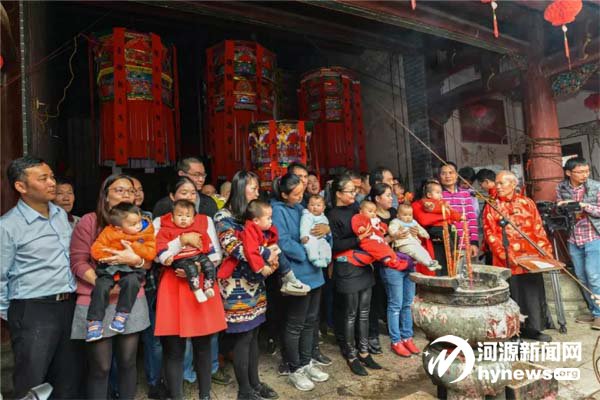 隨著鞭炮響起、獅鼓響起,在舞龍獅的助興下,村民們涌到祠 堂,忠信花燈上燈儀式正式開始。祠堂內(nèi)外人頭攢動、人聲鼎沸, 司前村15名家中添丁的上燈村民先添燈油,再吟誦詩句,送花燈 上梁,祭祖敬宗,最后新丁入族譜。儀式中,村民們還誦讀了家 訓,傳揚遵紀守法、和睦親鄰、修身齊家等傳統(tǒng)文化道德精髓。