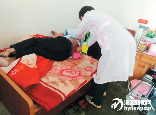 在黃田鎮敬老院中,生活著11 名五保戶老人,年紀最大的老人今 年已經有94 歲了。在今年3 月份 之前,這里的工作人員僅有兩名: 院長曾慶盛,以及一名煮飯阿姨。 平時,就是院長自己“一手包”,動 手給臥床老人翻身擦身、推車散 步,帶老人到醫院看病抓藥,照顧 老人飲食起居。2016 年底,黃田鎮 敬老院與鎮衛生院簽訂了合同,約 定每隔半月派醫護人員到院為老 人復診、醫療。而直到上個月,敬 老院才經批準后,又招聘了一名護 理人員,月薪2500元。