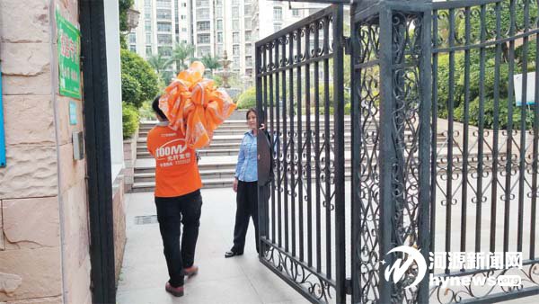 張秀連正在給小區居民開門。