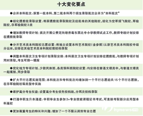 今年3 月,《廣東省招生委員會(huì)辦公室關(guān)于做好2018 年普通高校招生錄取批次調(diào)整工作的通知》(以下 簡(jiǎn)稱《通知》)印發(fā),明確今年廣東高考招生錄取批次進(jìn)行較大調(diào)整,有合并本科批次、細(xì)化提前批錄取設(shè)置、 設(shè)置高分優(yōu)先投檔線等10 項(xiàng)明顯變化,直接關(guān)系到今年廣大考生的填報(bào)志愿和錄取。