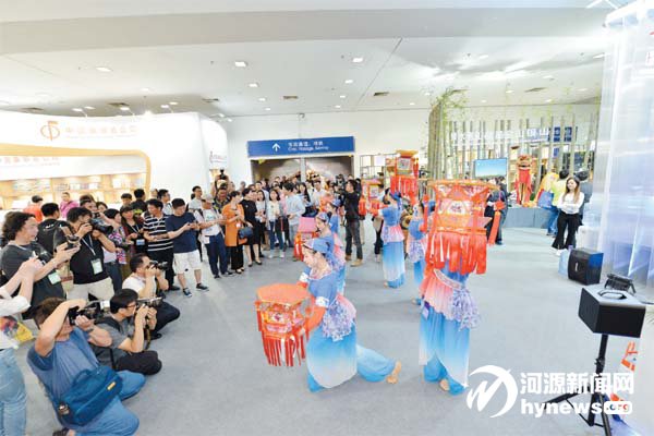 “確實很香!有得賣嗎?”就 職于河北省衡水市政府的何先生 喝了一杯紅茶后,迫不及待地想 要買些茶葉回去。紫金辣椒醬、 客家黃酒、陶瓷畫、墩頭藍布、忠 信花燈……何先生表示,河源展 館展示出的文化產品都挺有特 色,展現出了一個地方獨特的文 化歷史韻味,非常吸引人,自己 有機會一定會到河源走一走、看 一看。