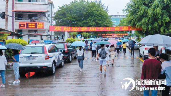盡管下著雨,但考生們依舊邁著從容的步伐走進考場。