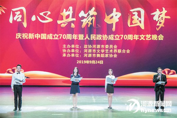前晚,由市政協主辦,市文聯協辦的“同心共筑中國夢”——慶祝新中國成立70周年暨人民政協成立70周年文藝晚會,在堅基桃花水母大劇院舉行。