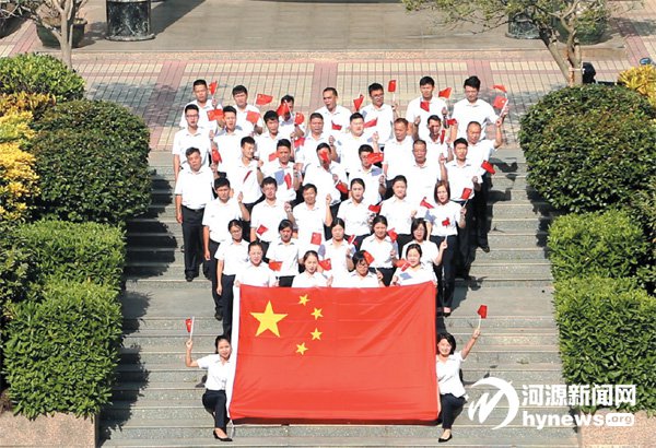 昨日,河源市國有資產經營有限公司在本部樓下舉行了一場齊唱《我和我的祖國》快閃活動,伴隨著《我和我的祖國》音樂響起,40名干部職工手揮國旗,齊聲歌唱,以此抒發對祖國的熱愛,為祖國獻上美好的祝福。