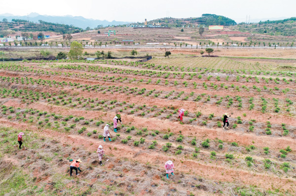 園區(qū)工人正在種植玫瑰花。楊志奇 攝