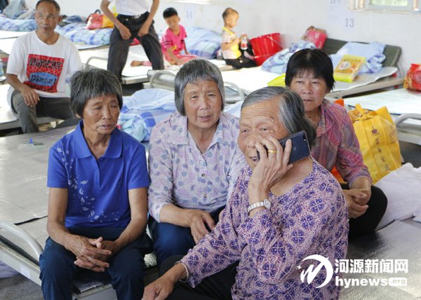 貝嶺中學(xué)安置點(diǎn),老人正在打電話給親友。