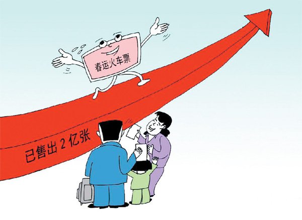 近日,記者從中國鐵路總公司獲悉,自2018年12月23日春運火車票發售以來,至2019年1月6日,全國鐵路各種售票方式共售出車票2億張,日均售出車票1332.3萬張,日均同比增加189.5萬張,增幅16.6%,單日售票量屢創新高。