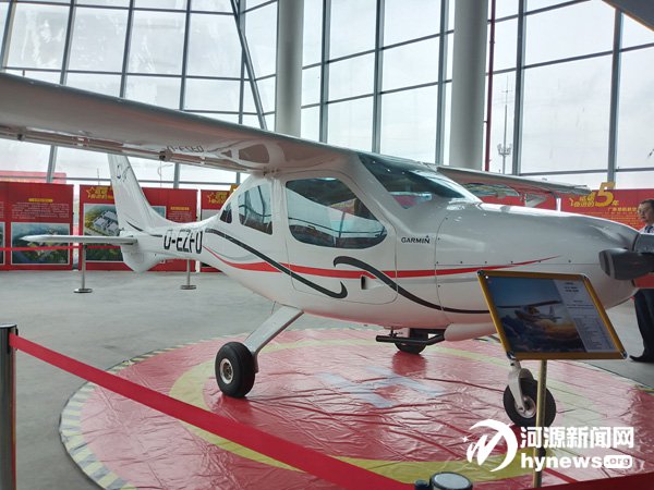 航空航天產業鏈項目(一期)奠基,將助力我市航空航天事業發展。圖為慈航飛機展廳展示的飛機。