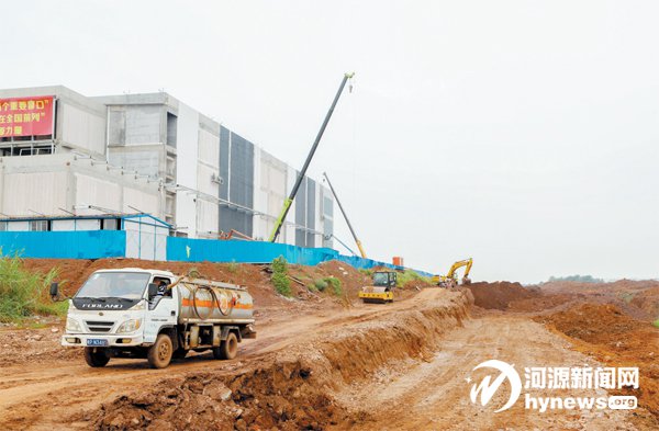 源城區(qū)工業(yè)園三期擴(kuò)園現(xiàn)場(chǎng)工地正在緊張施工中。