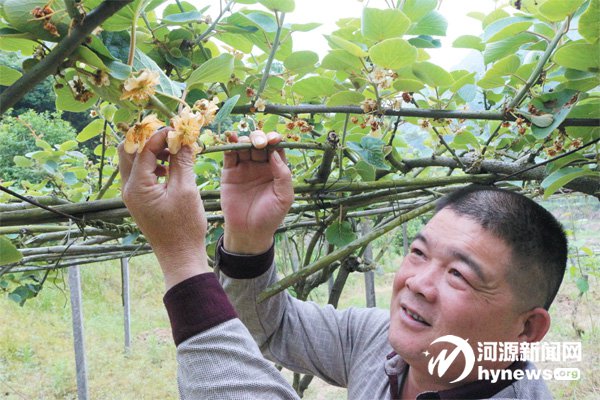 看到一朵朵獼猴桃花兒,何軍祥喜上眉梢。