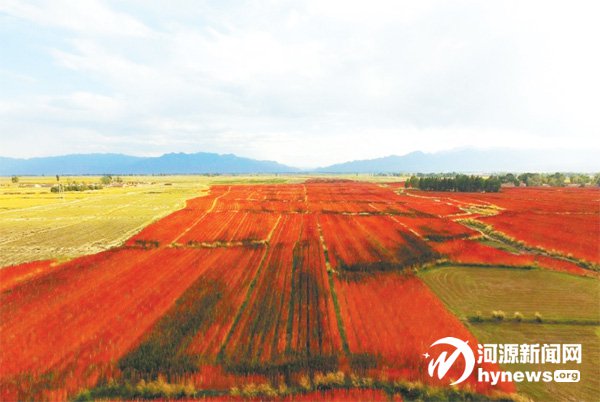 一片片紅彤彤的臺灣紅藜麥田集合起來就是一道十分美麗的風景線。