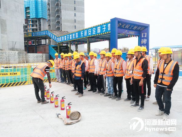 施工隊伍開展消防演練。