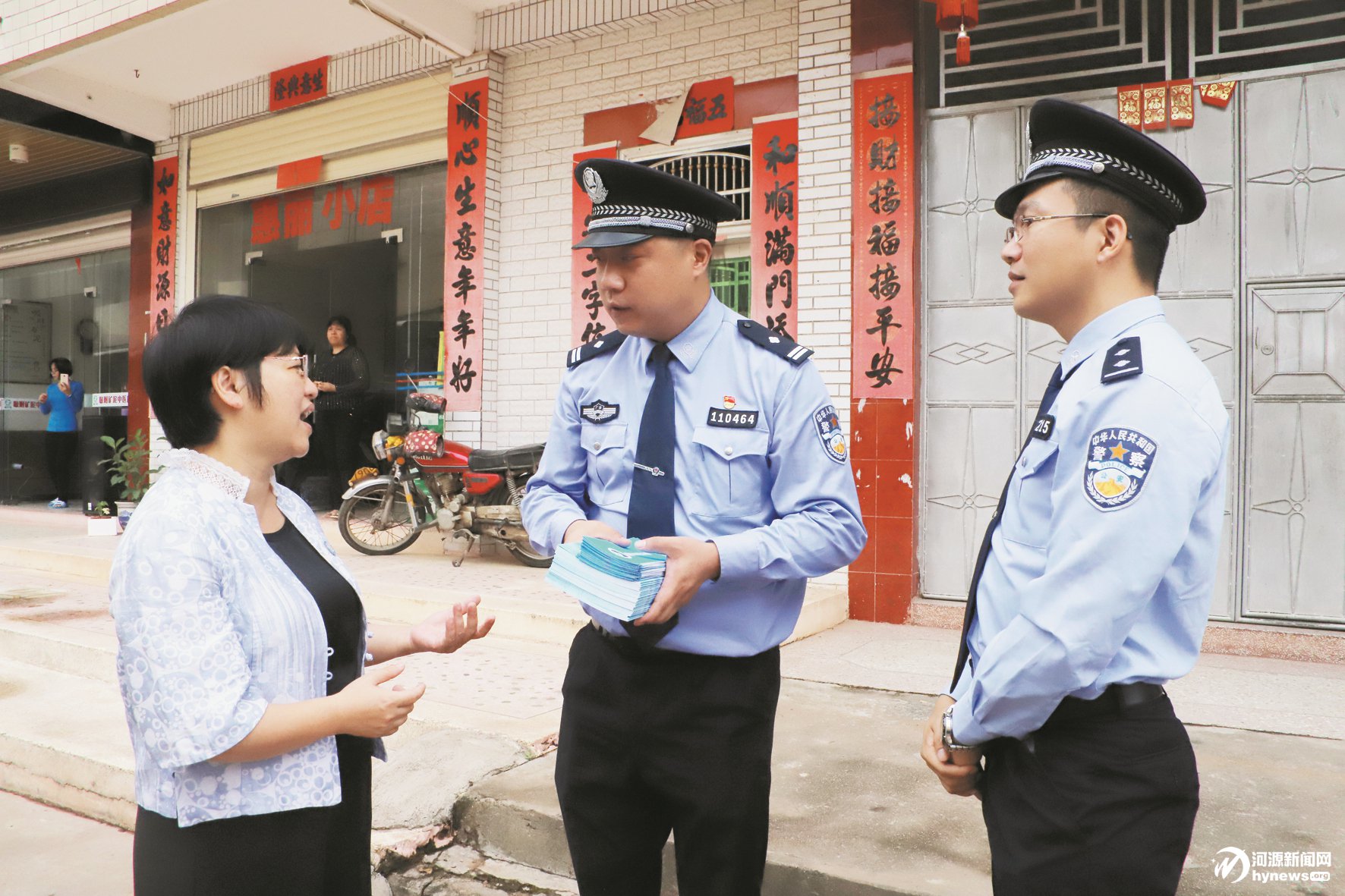 李洋(中)在走訪群眾的同時,開展掃黑除惡宣傳。