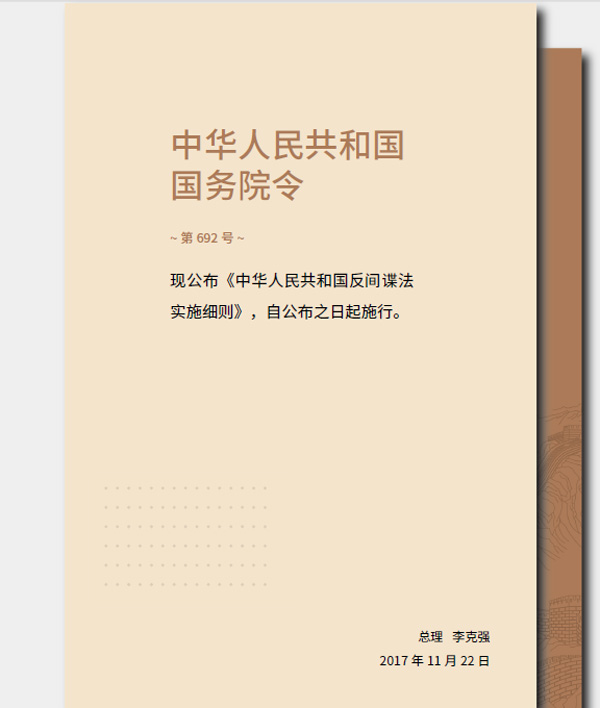 第四十條 本法自公布之日起施行。1993年2月22日第七屆全國人民代表大會常務委員會第三十次會議通過的《中華人民共和國國家安全法》同時廢止。