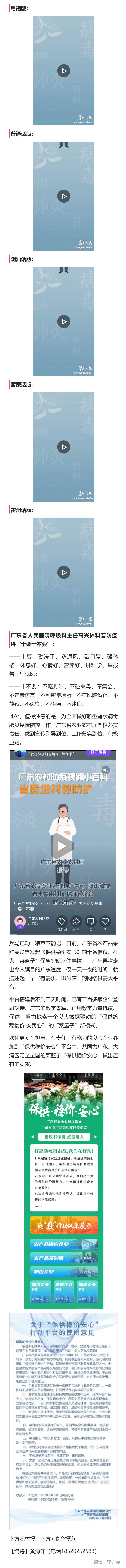 好消息來了!近日,在廣東省農業農村廳指導下,廣東省農民專業合作推廣中心、騰訊微視、春豐文化科技、珠江經濟臺共同制作,聯合廣東省人民醫院呼吸科專家,推出廣東農村防疫短視頻小百科,通過粵語、普通話、潮汕話、客家話、雷州話等多種語言,向廣東農村廣大朋友科普當下重點防疫工作的注意要點,廣東農村防疫短視頻瞬間在各農業人的朋友圈傳開。