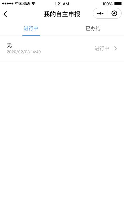 3、點擊【我的】,選擇“我的健康自查上報”即可查看我上報記錄,分為“進行中”和“已辦結”狀態。