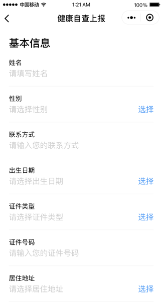 點擊【首頁】的“健康自查上報”按鈕,進入【健康自查上報頁】。