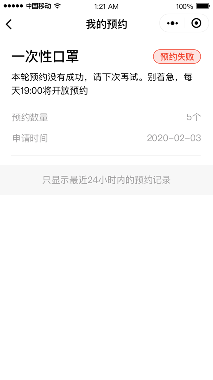 5、點擊【我的】,選擇“我的預約”即可查看我的預約記錄,記錄中可以查看是否預約成功,如預約失敗,可在次日晚7點再次預約。