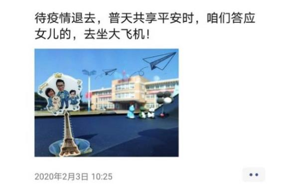 ——2月3日潘昌源朋友圈:待疫情退去,普天共享平安時,咱們答應女兒的,去坐大飛機。