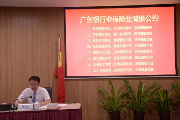 會上,該行行長助理楊柱忠同志作為領讀人帶領全行員工學習廣東銀行業保險業清廉公約條例。