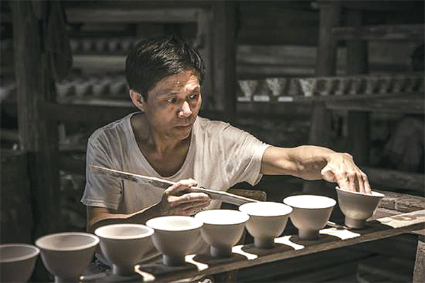 這里的作坊以生產日用瓷為主,其中包括碗、盅、杯、碟等品種,工人經過拉坯、印坯、利坯、挖足、施釉、畫坯等工序,制作出的瓷器胎質細膩,造型規整,素以“白如玉、明如鏡、薄如紙、聲如磬”著稱于世。