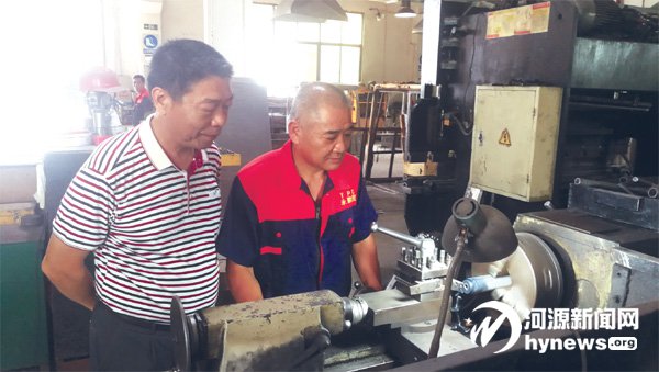 7月31日,在位于龍川縣工業園的龍川縣永鵬程工程機械有限公司(以下簡稱“永鵬程公司”)的廠房里,記者見到了陳新鵬,他正在與車間工人討論機械切割事宜。外人很難看出,這位皮膚黝黑、頭發開始發白的工廠老板,竟然是一位退伍軍人。
