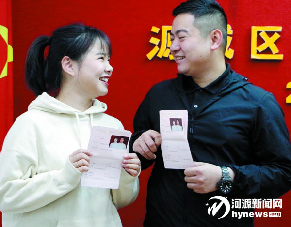 據了解,元旦當日源城區婚姻登記處共有15對新人登記結婚,領取結婚證。