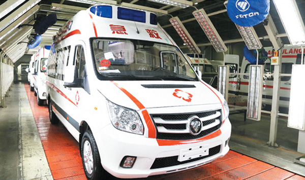 北汽福田圖雅諾負壓救護車生產車間大年初一即全員到崗,確保了首批負壓救護車緊隨 “超強陣容醫療隊”奔赴武漢。(資料圖片)