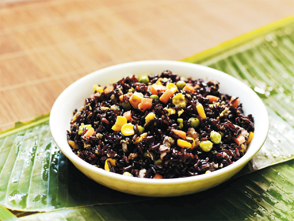 經過千年的星移物換,黑米栽培范圍也從陜西、云南、貴州擴展到全國各地,并在近幾年作為扶貧產業引進古邑龍川的通衢鎮華城村,在農民們第一次播下黑稻谷種,看到禾苗抽出與黃穗迥然相異的黑穗,出產一種與“白花花”的大米截然不同的“黑黝黝”的大米時,農民們的眼睛亮了,黑米能讓這片土壤上生根結穗,就一定能帶來脫貧致富的新希望。在一次次豐收后,端上當地人們的飯桌,蒸米飯時,七分白米加入三分黑米,黑白調和,能增加米飯的營養成分,又能增強米飯的飽腹感,是女性朋友極為理想的“減肥飯”;煮稀飯時放入銀耳、冰糖之類,勝似瓊漿玉液;更有一種做法,把臘肉、玉米、紅蘿卜切碎和晶瑩的黑米粒做成色彩繽紛的炒飯。在鍋熱了以后,切碎的蔥放到鍋里,蔥爆香之后,拿鏟子翻兩下鍋就趕緊把配料和米飯擱進去,開始翻炒,期間除了鹽不放任何調味品,出鍋后的炒飯粒粒分開,飽滿晶瑩,色香味俱全,一勺入口,幸福感爆棚。不管是記憶中的炒飯還是眼前耳目一新的黑米炒飯,都說炒飯是最簡單的食物,但是往往簡單易行才更能引起人們的喜愛和留戀。
