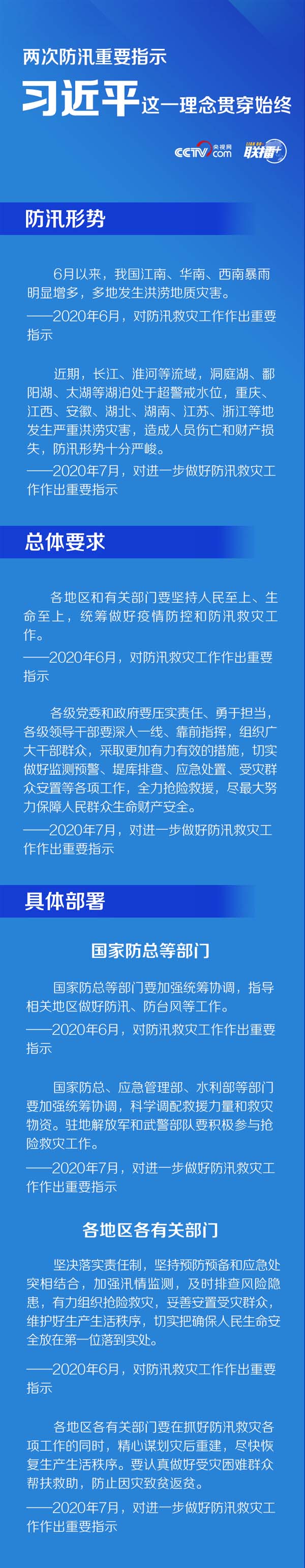 這是習(xí)近平總書(shū)記近期第二次對(duì)防汛救災(zāi)工作作出重要指示。在6月作出的重要指示中,總書(shū)記要求,“各地區(qū)和有關(guān)部門(mén)要堅(jiān)持人民至上、生命至上,統(tǒng)籌做好疫情防控和防汛救災(zāi)工作”“切實(shí)把確保人民生命安全放在第一位落到實(shí)處”。