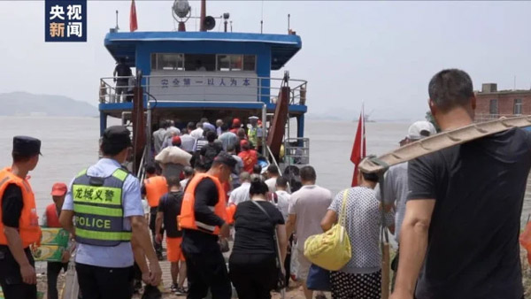江西省九江市彭澤縣棉船鎮居民在有序撤離。