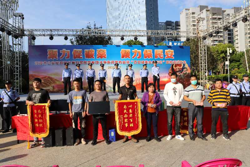 本報(bào)訊 記者 彭茂洋 通訊員 林小明 11月7日,源城公安分局在市區(qū)萬(wàn)隆城召開(kāi)掃黑除惡專(zhuān)項(xiàng)斗爭(zhēng)新聞發(fā)布會(huì)暨“百日破案會(huì)戰(zhàn)行動(dòng)”返贓大會(huì),向社會(huì)各界通報(bào)掃黑除惡專(zhuān)項(xiàng)斗爭(zhēng)成果,及時(shí)向群眾返還“百日破案會(huì)戰(zhàn)行動(dòng)”中前期繳獲的贓款贓物。這是源城公安分局踐行執(zhí)法為民、全心全意為人民服務(wù)、保障人民群眾安居樂(lè)業(yè)的具體行動(dòng)體現(xiàn),也是該局堅(jiān)決嚴(yán)厲打擊各類(lèi)違法犯罪活動(dòng)的成效體現(xiàn)。