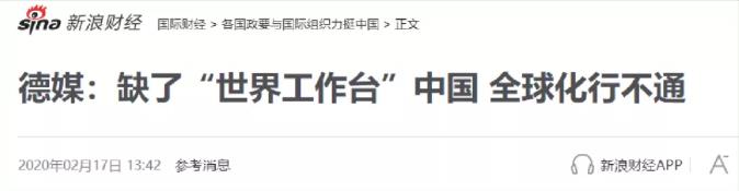 德國新聞電視頻道網(wǎng)站15日發(fā)表文章稱:“大批歐洲制造商還不確定重要的中國零部件能否發(fā)貨。如果中國合作伙伴無法盡快恢復(fù)生產(chǎn),一些公司可能會暫時被迫關(guān)閉歐洲工廠”。