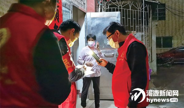 臨時黨支部網格員利用晚上時間對部分居民進行走訪登記。