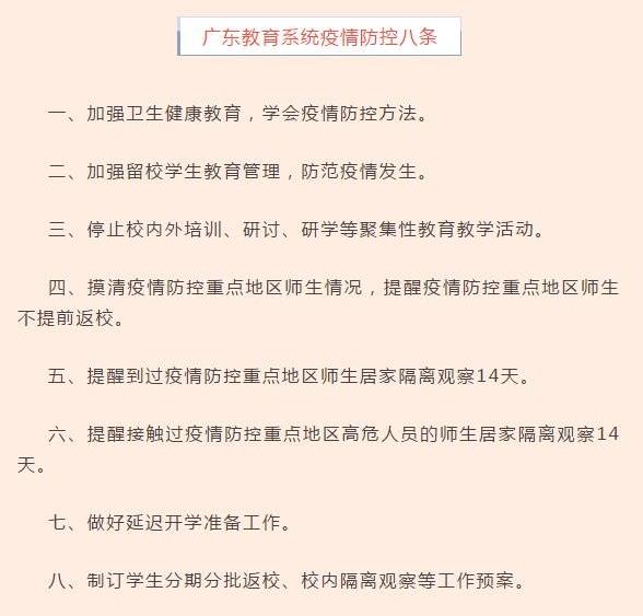 廣東省教育廳發(fā)布“疫情防控八條”:做好延遲開(kāi)學(xué)準(zhǔn)備工作