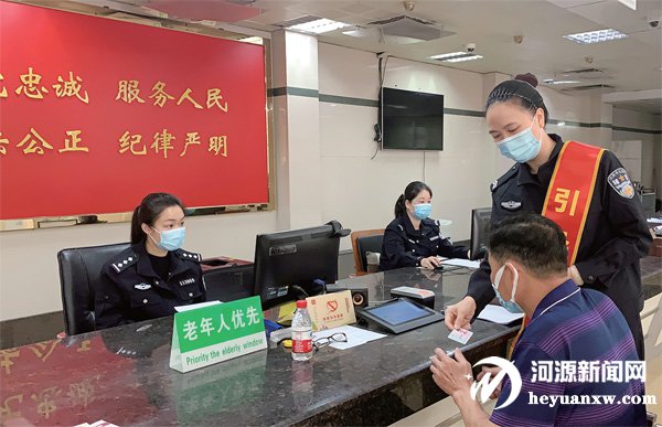“您好,請問您辦理什么業務?”“請您不要著急,我會很快為您辦理。”在河源市公安局出入境辦證大廳證件辦理窗口,民警正在為前來辦事的群眾服務,親切的笑容、溫和的聲音,讓群眾打心里感到溫暖。高效、滿意的服務態度贏得群眾口碑,讓市公安局出入境辦證大廳在近期榮獲“全國青年文明號”稱號。