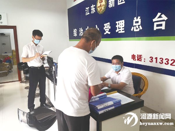 江東新區工作人員正在解決群眾來訪問題。