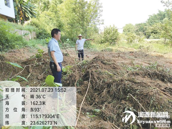黃俊鋒(左一)組織開展撂荒地復耕復產。